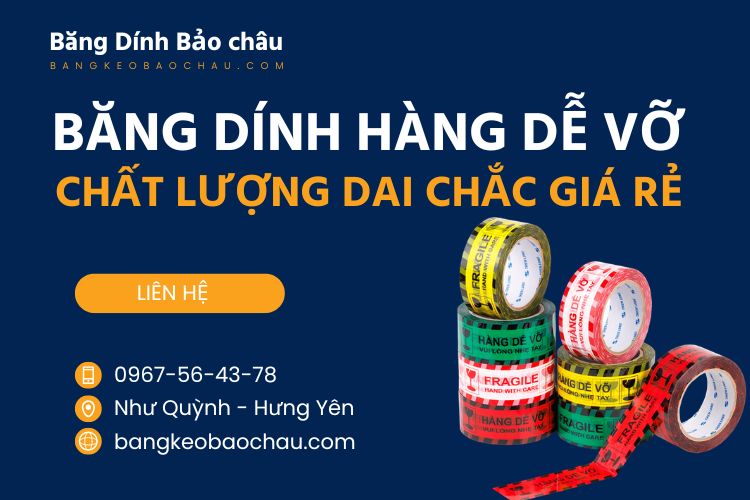 Trong lĩnh vực đóng gói và vận chuyển hàng hóa, việc đảm bảo an toàn cho sản phẩm luôn là yếu tố quan trọng hàng đầu. Đặc biệt đối với các mặt hàng dễ vỡ như đồ thủy tinh, gốm sứ, linh kiện điện tử…, việc sử dụng Băng Dính Hàng Dễ Vỡ không chỉ giúp bảo vệ sản phẩm mà còn góp phần nâng cao uy tín doanh nghiệp. Vậy Băng Dính Hàng Dễ Vỡ là gì, có vai trò và công dụng ra sao? Hãy cùng tìm hiểu chi tiết trong bài viết dưới đây, đồng thời khám phá dịch vụ sản xuất và cung cấp Băng Dính Hàng Dễ Vỡ chất lượng cao của Công ty Băng Dính Bảo Châu.